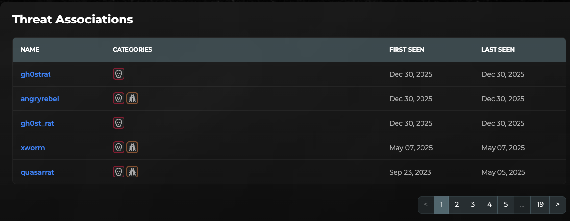 In Image 2 below, are some of the threats that have been observed across the CDN77 network, which includes several RATs, Infostealers, and other commodity malware.